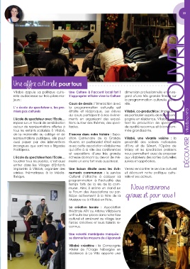 Villabé appuie sa politique cultu- Une Culture à l’accent local fort ! dimension professionnelle et un re-
